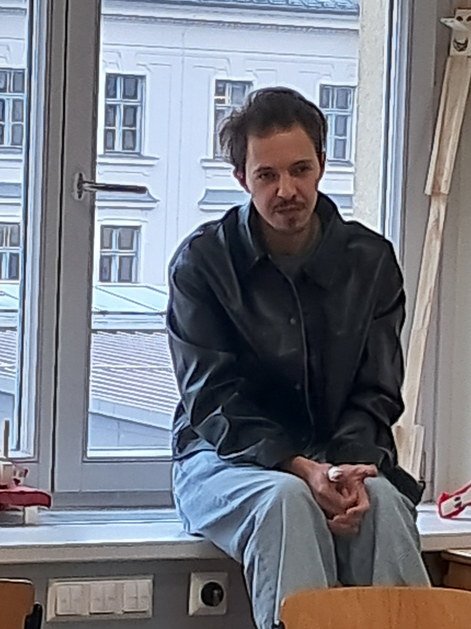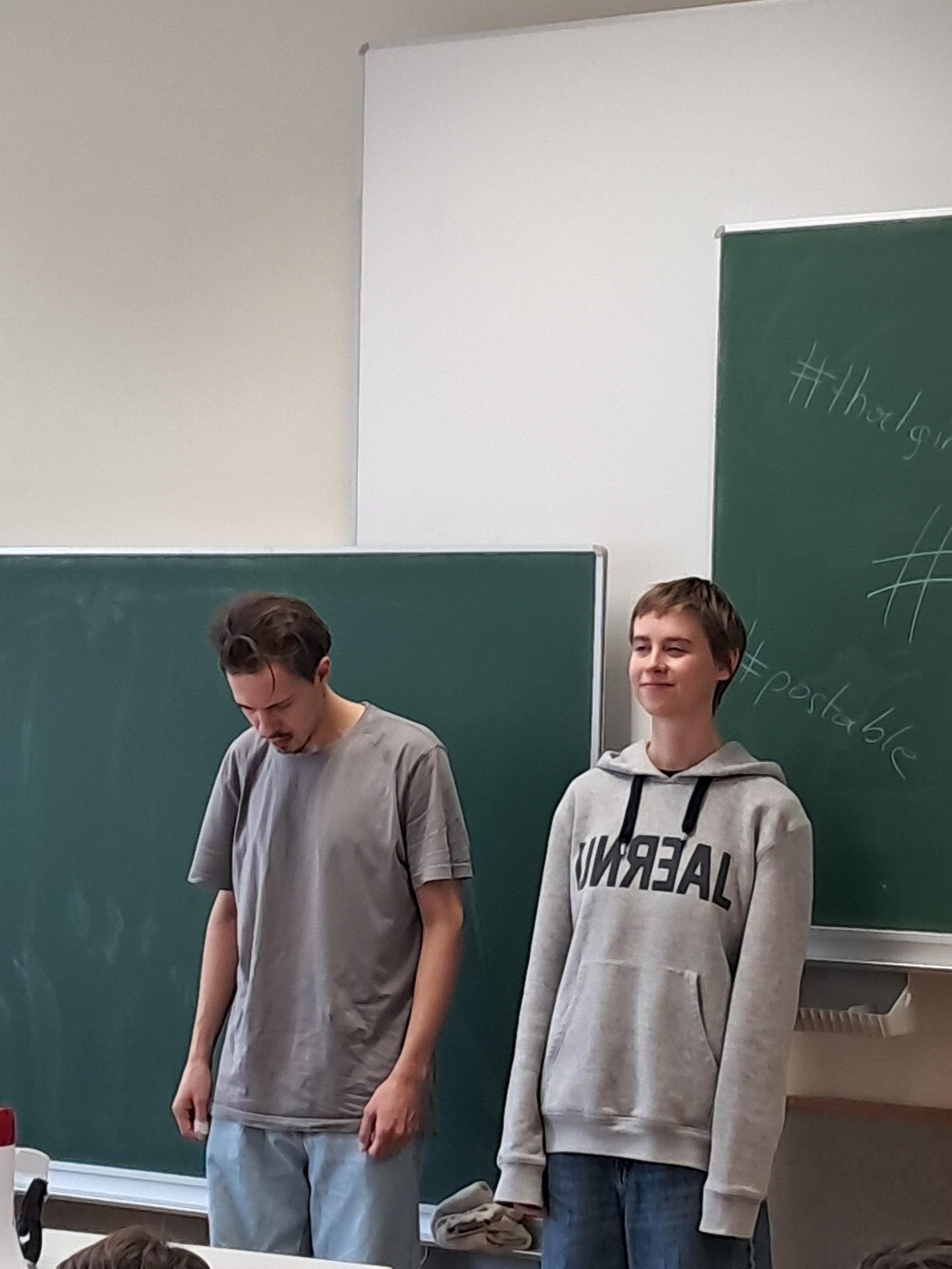 Am Ende fragten die beiden uns, mit welchem Wort wir die Theateraufführung beschreiben würden, ob wir glauben das der Text von KI gerieben wurde und wir durften Fragen stellen. Sie erklärten uns, dass die Aufführung außer ein paar Sätzen von Menschen geschrieben wurde und dass die Geschichte, die der Mann und erzählt hat, seine echte Geschichte ist.