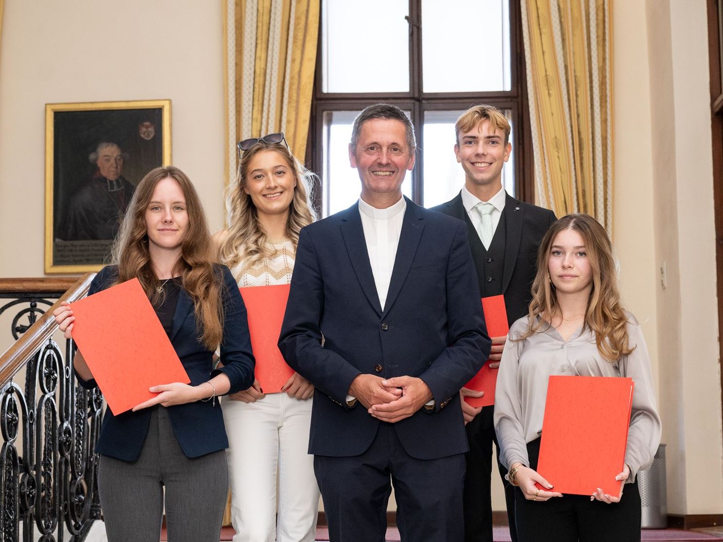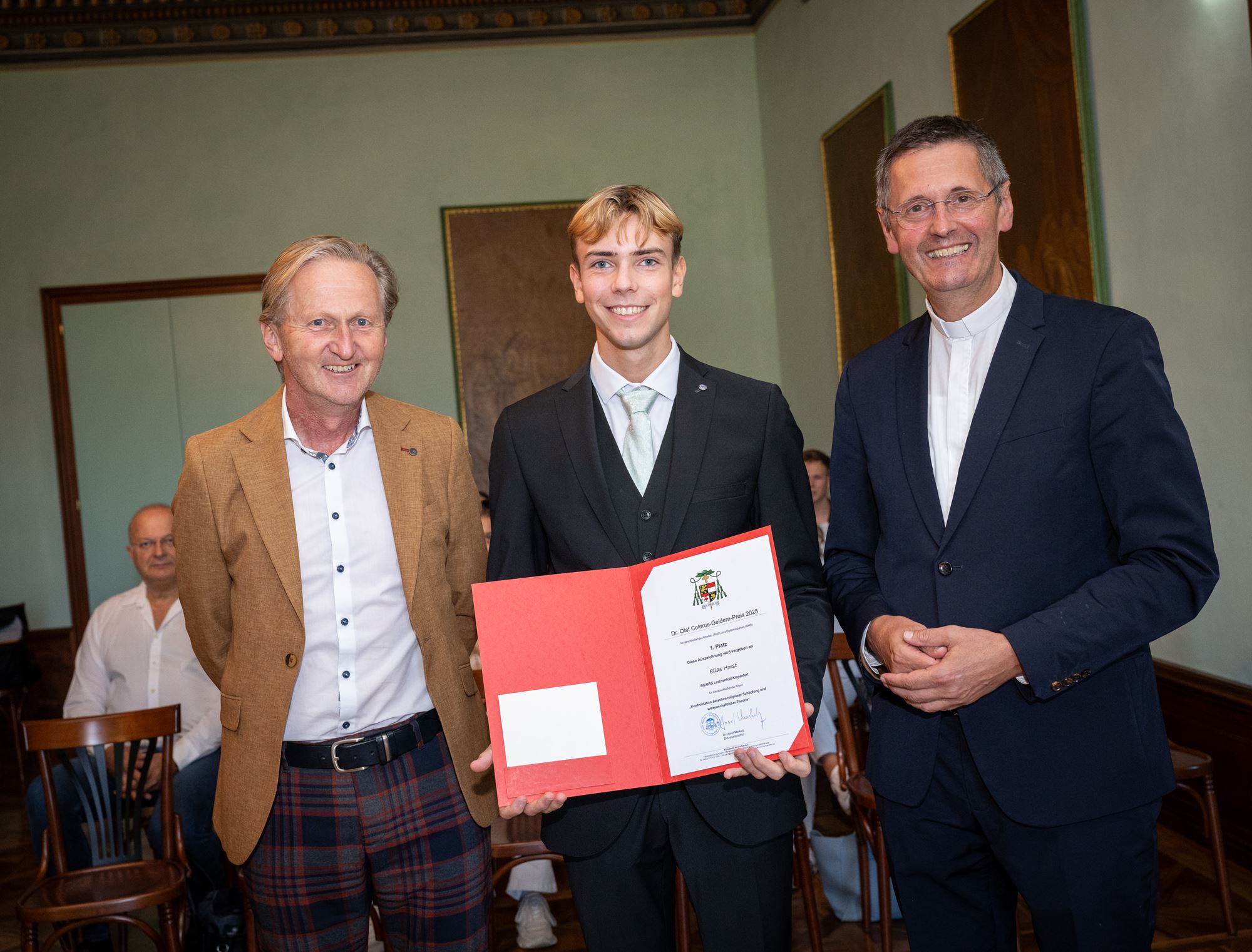 Dieses Jahr wurde unserem Maturanten Elias Horst der 1. Platz für seine Abschließende Arbeit „Konfrontation zwischen religiöser Schöpfung und wissenschaftlicher Theorie“ verliehen. In seiner spannenden Arbeit vergleicht er Schöpfungsmythen aus Christentum, Hinduismus und nordischer Mythologie mit den wissenschaftlichen Theorien über den Urknall und die Evolution. Diese scheinbar konträren Positionen werden als sich ergänzend dargestellt und beiden Seiten ein Wahrheitsanspruch zugesagt.