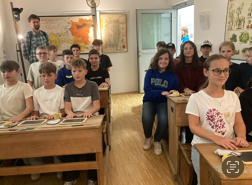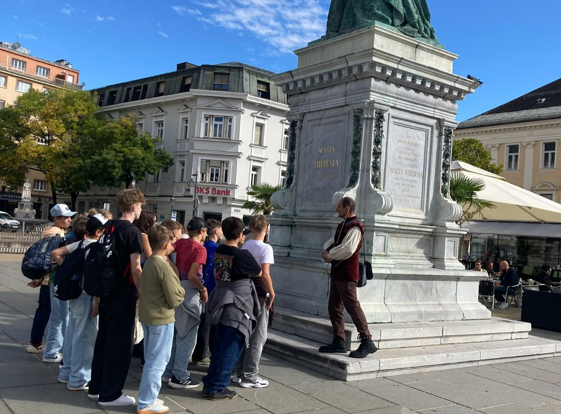 Die 3c unternahm einen spannenden Ausflug in die Klagenfurter Innenstadt, begleitet von Prof. Lauchard und Prof. Karnel-Marchart. Zuerst stand eine Führung mit Horst Ragusch auf dem Programm, bei der die SchülerInnen viel über die Kinderrechte und über den Schulalltag im 18. Jh. erfuhren. Besonders interessant war der Besuch bei der Kija (Kinder- und Jugendanwaltschaft), wo erklärt wurde, welche Aufgaben diese Einrichtung erfüllt und wie Kinder unterstützt werden können. Anschließend ging es in das Schulmuseum Klagenfurt in der Lidmanskygasse. Dort erlebte die Klasse „Unterricht wie damals“: auf alten Holzbänken, mit Griffeln und Schiefertafeln. So konnten die SchülerInnen hautnah nachvollziehen, wie Schule früher ausgesehen hat. Der Ausflug war lehrreich, abwechslungsreich und machte allen großen Spaß.
